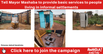 Provide basic services to informal settlements“When we think about using the toilet, we feel dirty. We feel like we don’t have human dignity, but we have nowhere else to live, so we just have to make the best of it. This is why we are building our own toilets.” Margret Mabene, Mzondi resident. Just recently, reports surfaced that people living in Mzondi informal settlement, Ivory Park, had started a crowdfund so that they could build toilets [1]. This desperation exists across many informal settlements that are scattered across South Africa's cities. Despite this, many people living in informal settlements are overlooked in service provision. There is a growing demand for living space around cities, and South Africa has housing backlogs. People living in informal settlements have rights. The need to grant them access to water and sanitation is a human rights issue. South Africa has the laws that force municipalities to provide basic services. Abahlali BaseMjondolo, in their Harry Gwala court case against the City of Ekurhuleni, are a good example of how people living in informal settlements have used the law to defend their rights. In this case, the people successfully argued that Ekurhuleni had a statutory obligation in terms of the Water Services Act, which requires a safe albeit temporary toilet for each stand, including in informal settlements [2]. It is important for ordinary South Africans to stand in solidarity with those who are marginalised. This is important for the advancement of justice and equity, ideals that are enshried in our Constitution. People living in informal settlements deserve dignity, like all human beings, irrespective of their material condition. [1] Community tries crowd funding to get toilets, Zoe Postman for GroundUp News. March 13, 2018. [2] The right to basic services in informal settlements: Notes on Harry Gwala High Court hearing 12 December 2008, Abahlali BaseMjondolo. Dec 15, 2008.5 of 100 SignaturesCreated by Amandla.mobi Member
