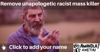 Racist mass killer milking the poorIn previous interviews Van Schoor admitted to shooting at least 100 black people he claimed were burglars around Cambridge, a white suburb in East London. In an interview with the Guardian in 2006, Van Schoor refused to apologise for the killings, saying he was merely doing his job. He is quoted saying, "I never apologised for what I did. I apologised for any hurt or pain that I caused through my actions during the course of my work." Government funds cannot be spent on benefiting unapologetic racist mass killers. That Louis van Schoor is a mentor and director for the beneficiaries of Kingsdale Dairy Farm is a slap in the face for the fight against racism and the quest for justice in Mzansi.83 of 100 SignaturesCreated by Nqaba Mpofu