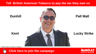 Tell British American Tobacco to pay the tax they owe usThe big cigarette company British American Tobacco (BAT) have been fighting hard against new anti-smoking laws and taxes by shifting focus onto the illicit cigarette trade and tax evasion. They are funding a misleading campaign to convince government not to increase taxes on cigarettes so they can protect their profits [1]. Even companies like PricewaterhouseCoopers (PwC) are repeating industry claims that increasing taxes drives the illicit trade [2], even though industry has been caught over estimating and funding research into illicit trade [3]. Now Sars say BAT themselves are guilty of tax fraud and evasion and owe R143 million [4]. Clearly, they have been dishonest and shady in their tactics. But big companies like BAT rely on their brand and public image so they are vulnerable to us exposing their hypocrisy. If enough of us come together and shine a spotlight on their shady business and demand they pay what they owe- they will have no choice but to pay the R143 million. Join the campaign to demand BAT stop tax evading and pay what they owe. Each year South Africa spends more than R59 billion to address tobacco related illnesses like lung cancer, emphysema, asthma and bronchitis [5]. At the same time the country only collects between R11 billion and R13 billion from tobacco taxes [6]. This means the South African taxpayer is paying for the healthcare bill of tobacco-related harm while the tobacco industry collects the profits. Our queues at clinics and hospitals keep getting longer and government keeps cutting the healthcare budget while cigarette companies make billions. But, if enough of us come together and demand they pay what they owe, they will have no choice but to pay the R143 million. Government can use this money to help our struggling healthcare system. References [1] Did Big Tobacco buy Twitter? Joan van Dyk for Mail & Guardian 7 Sept 2018 [2] What to expect from the budget: Small tax increases, lower tax collection. Muhammad Hussain for City Press 13 Feb 2019 [3] Are the tobacco industry's claims about the size of the illicit cigarette market credible? The case of South Africa. 2014 Corné van Walbeek, Lerato Shai [4] Sars faces off with British American Tobacco over R143m tax bill, Graeme Hosken for Sunday Times April 2019 [5] The Tobacco Atlas - South Africa [6] BAT revenue rises but profit and market share fall, Robert Laing for Bizcommunity July 20171,889 of 2,000 SignaturesCreated by Khaliel Moses