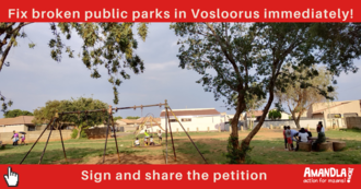 Fix broken public parks in Vosloorus immediately!The unavailability of proper and safe parks have led to children in the townships being locked inside their yards in order to safeguard them from external harm. This is a grave injustice as it not only leads to social isolation which negatively affects a child’s development, but it is a great contributor to health issues associated with lifestyle illnesses later in their lives. But this does not only speak to children as every member of our society gets affected by the lack of public playgrounds and training infrastructure. It is a fact that all four public parks and recreational facilities in the community of Ward 47 in Vosloorus are dilapidated without a single swing, slide, mary-go-round and exercising equipment being in a conducive state for public use. A few weeks ago over the spring holidays, my nephew had his trousers torn as a result of sliding down a rusty slide which almost caused an injury to his buttocks. Why has the municipality let such important infrastructure go unmaintained? Where are our children supposed to learn physical and social skills outside of the school playgrounds? After all, Outdoor play helps kids to build flexibility and creativity. They also have to learn to interact with other children, for example, at the swings or the slide, where they can learn about the importance of sharing and turn-taking [1]. In South Africa, diabetes is the most common cause of death in adult females, followed by cardiovascular disease and hypertension [2]. It is because of this reason that we cannot afford to have our townships' public recreational infrastructure neglected when the government should be encouraging physical activity and the culture of exercising, especially since the highest prevalence of obesity among South African adults, stratified by sex and race, was found to be in African women. We need to have our training equipment maintained in the same parks where our children play so that we can safely watch over them as we all stay active and keep in shape for our health and social benefits. Maintaining the equipment alone will not be enough if the environment itself is not physically inviting. This is why it is important to ensure that the grass stays cut and trees get pruned on a regular basis. People are social beings who need to participate in recreational activities in order to be stimulated. As a result, we need benches, picnic and braai areas, taps and garbage bins to be made available in our parks in as far as encouraging the culture of keeping our township litter free, especially in shared public spaces. There should also be employment of security guards to ensure that our parks stay secure and are alcohol free zones. This initiative will also create employment opportunities, thereby reducing the unemployment rate that is currently plaguing our country. Let us remind our local government that they have a responsibility over the wellness of our communities by adding your name to this petition. References [1] https://www.bbc.co.uk/tiny-happy-people/articles.Ryan [2] https://knowledgehub.health.gov.za/system/files/webinar/obesity-strategy.pdf26 of 100 SignaturesCreated by Nozipho Ntshingila