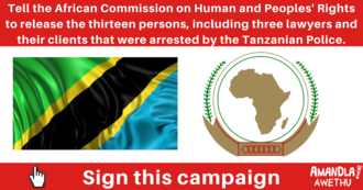 Release the 13 persons arrested by the Tanzanian PoliceThe persons arrested were released and they are safe. http://www.news24.com/SouthAfrica/News/we-were-held-hostage-at-a-tanzanian-police-station-sa-human-rights-lawyer-20171028924 SignaturesCreated by Amandla.mobi Member